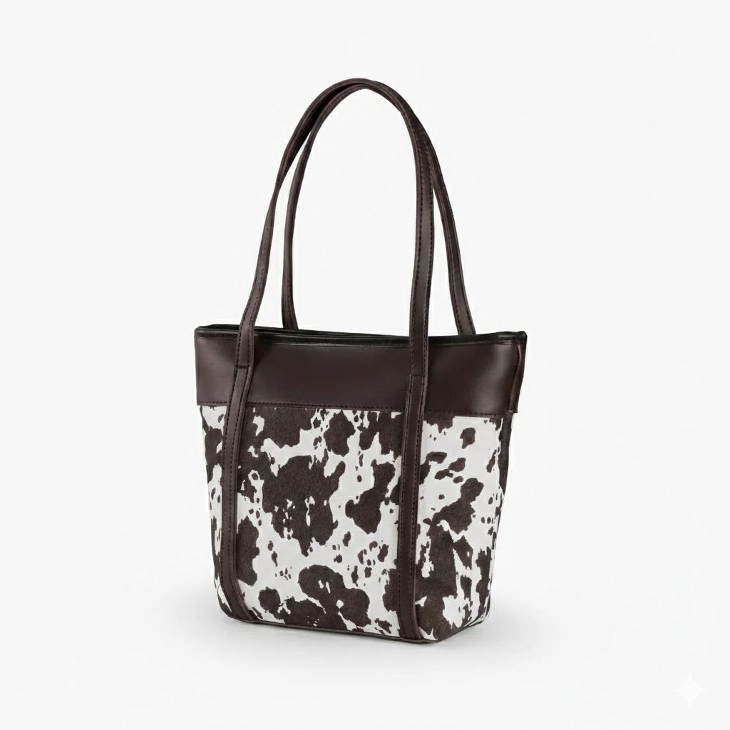 Premium Cow Texture Chocolate Tote Bag